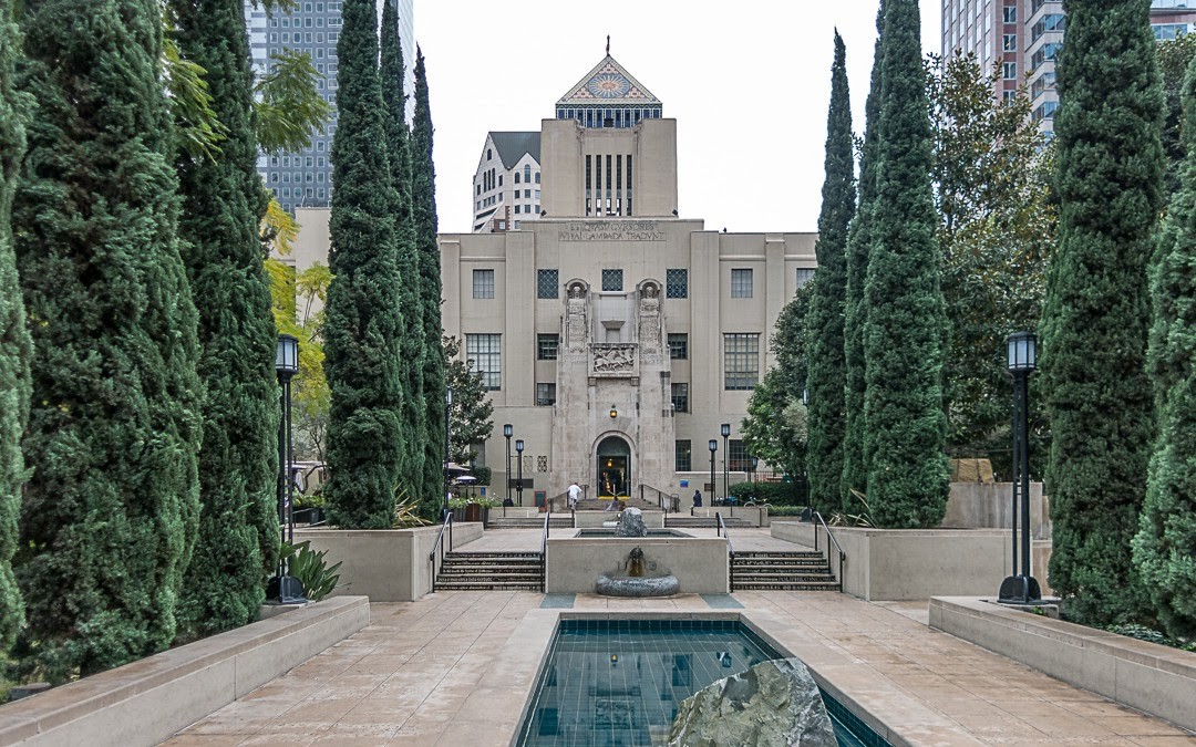 مكتبة لوس أنجلوس المركزية هي مكتبة عامة في غرب الولايات المتحدة، تجذب عشاق الكتب والهندسة المعمارية منذ إنشائها في عام 1926م. تم بناؤها بواسطة المهندس المعماري بيرترام جودهيو، وقد اعتمد في تصميمه على عناصر تصميم من مصر القديمة لإنشاء واجهة هندسية مع الزخارف والرمزية في جميع أنحاء المبنى. يوجد فوق المكتبة هرمٌ مميز من القرميد مع يد ذهبية تحمل شعلة، سقفها اللّوبي الرئيسي مطلي بشكل معقد بواسطة رينيه بتروبولوس. في عام 1993 أضيفت مساحة 330،000 قدم مربع – تُسمّى جناح توم برادلي.